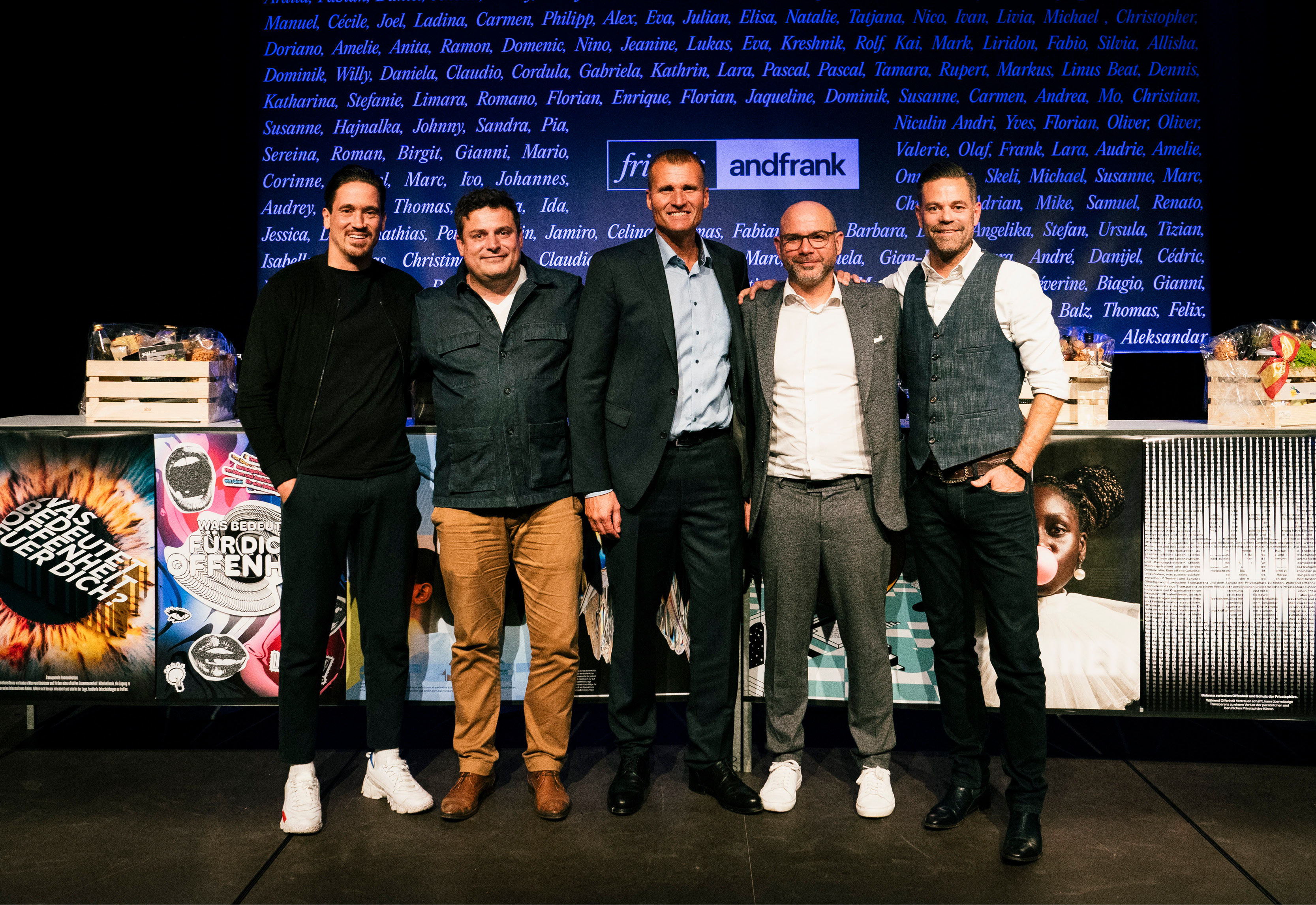 Das erste andfrank-Agenturfest war ein voller Erfolg. Mehr als 180 Kunden, Partner, Freunde und Familienmitglieder folgten unserer Einladung. Der Abend startete mit einem Apéro in den eigenen Räumlichkeiten und setzte sich im Eisenwerk in Frauenfeld fort. Dort erwartete die Gäste nicht nur kulinarische Highlights, sondern auch eine inspirierende Podiumsdiskussion zum Thema «Offenheit im Arbeitsalltag», moderiert durch den SRF-Moderator Lukas Studer.